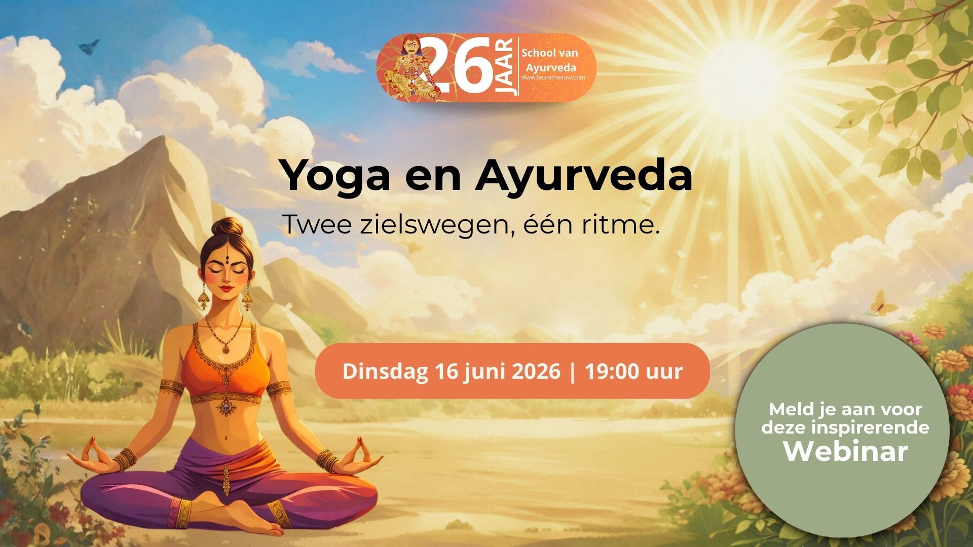 Rond Internationale Yogadag nodigt Lies Ameeuw je niet alleen uit voor een live bijeenkomst in Diksmuide, maar ook voor een inspirerend online webinar over de diepe verbinding tussen yoga en Ayurveda.